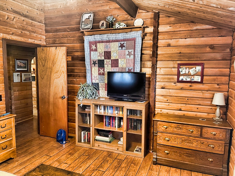 This cabin offers sleeping for 9, among 3 different bedrooms and the den.